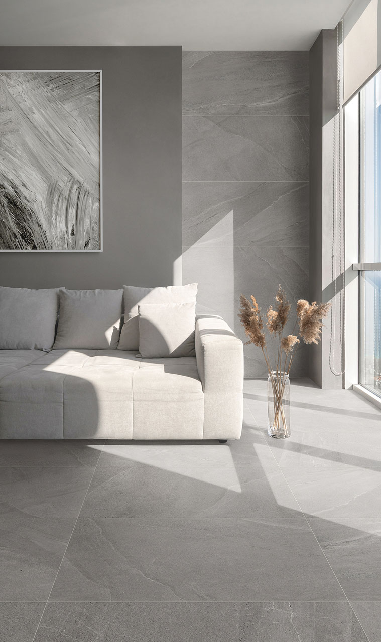 Die hellgraue Fliese in Natursteinoptik verleiht Ihrem Badezimmer eine zeitlose Eleganz und sorgt für eine ruhige Atmosphäre. Durch ihr sanftes Farbenspiel und die hochwertige Haptik eignet sie sich perfekt als Wandfliese für moderne Bäder. Als Feinsteinzeug in Steinoptik ist sie besonders pflegeleicht, langlebig und auch als Bodenfliese ein stilvolles Element, das das Badezimmer elegant abrundet.