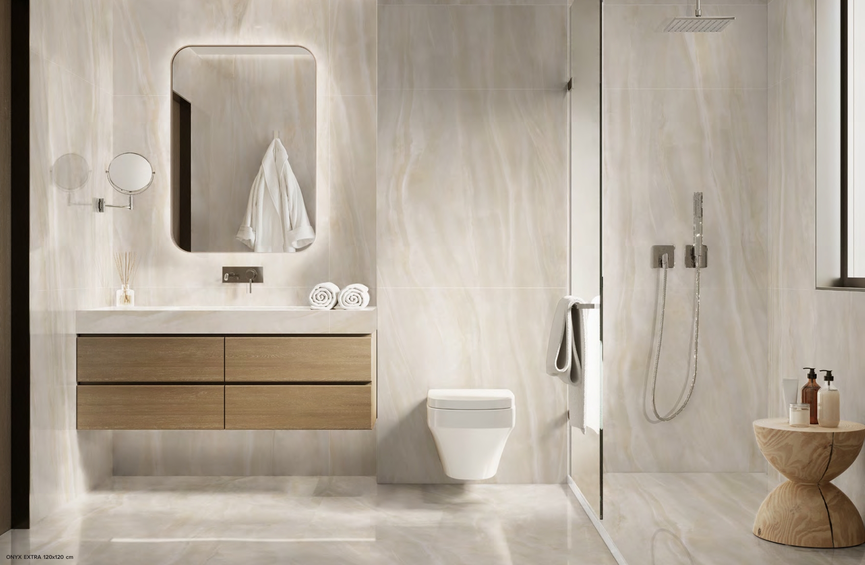 Die Fliese Onyx Extra aus glasiertem Feinsteinzeug besticht durch ihre elegante und edle Optik. Mit ihrem natürlichen Onyx-Design in warmen, harmonischen Farbtönen verleiht sie jedem Raum eine besondere Atmosphäre. Die glatte, glänzende Oberfläche sorgt für ein stilvolles Erscheinungsbild und ist zudem besonders pflegeleicht. Ob als Bodenbelag oder Wandfliese – die Onyx Extra ist die perfekte Wahl für anspruchsvolle Raumgestaltung und schafft eine elegante, zeitlose Atmosphäre in Ihrem Zuhause.